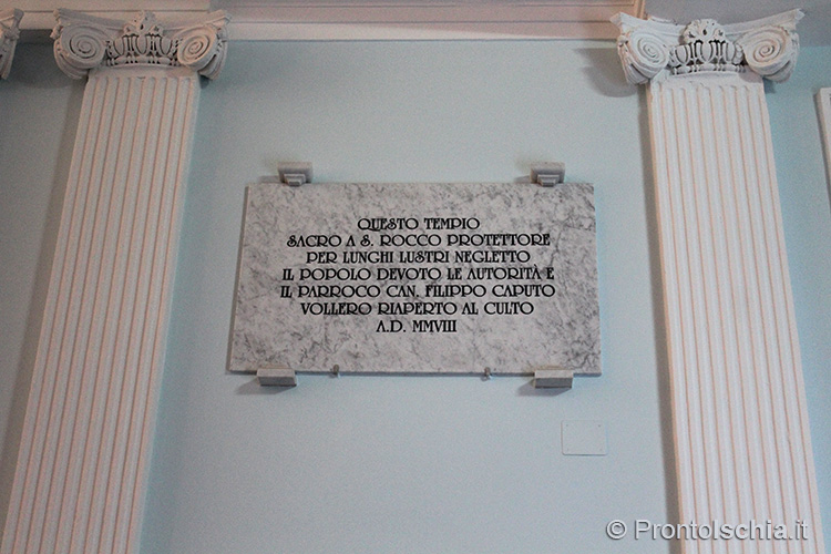 Insomma, le chiese sono parte importante del racconto dell'isola d'Ischia. Quella di San Rocco, in particolare, conferma le origini contadine del territorio, dacchè il santo protettore dalla peste (a Ischia vi fu una terribile pestilenza proprio attorno la metà del '600) ha visto nei secoli il suo patronato estendersi al mondo contadino, agli animali, e ai terremoti, altro flagello che ha ripetutamente riguardato l'isola.