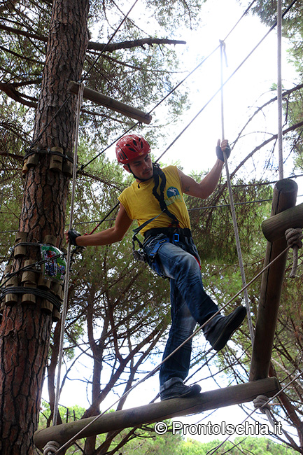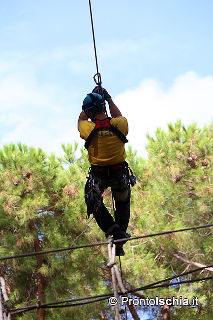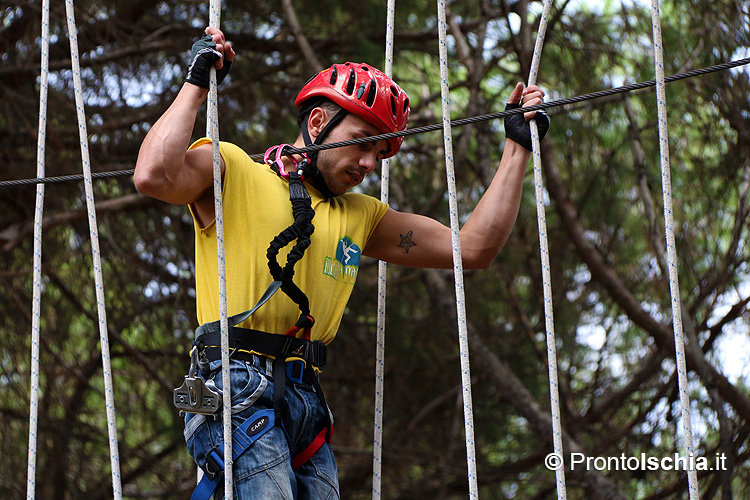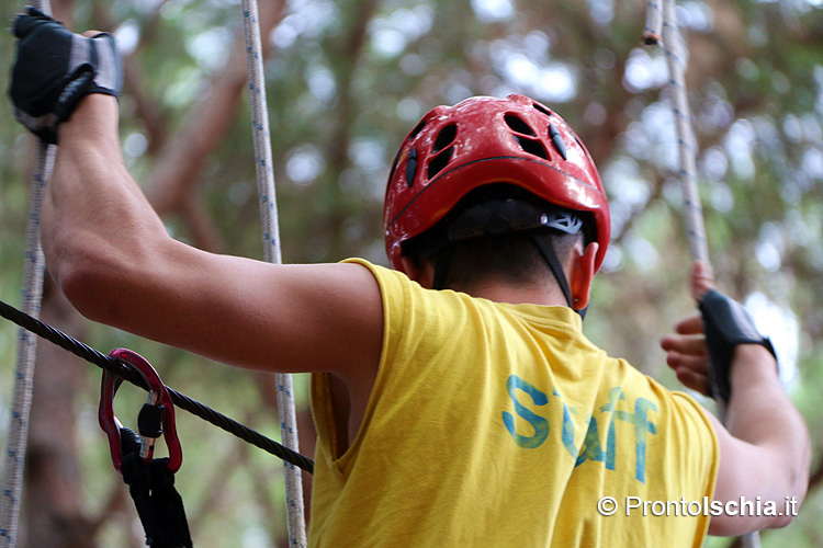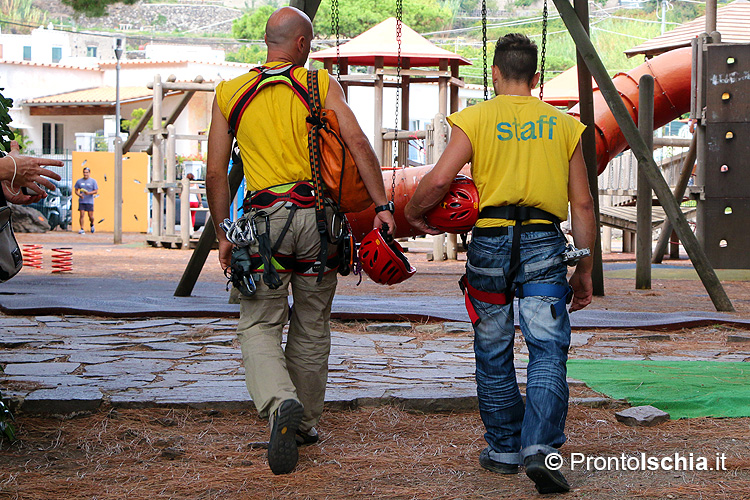 Da questo punto di vista i curriculum di Antonio Gebbia e Raffaella Scotti, le due "anime" dell'Indiana Park di Ischia sono garanzia di assoluta affidabilità. Antonio è il classico "scugnizzo" che oltre alla sguardo sveglio e alla parlantina coinvolgente, come solo nella migliore tradizione napoletana, ha un'impressionante quantità di titoli: Dottore in Scienze Naturali; istruttore di paracadutismo; arrampicata protetta; arrampicata sportiva; escursionismo; operatore del Soccorso Alpino e Speleologico; formatore per la sicurezza sul lavoro e tanto altro ancora per un uomo e un atleta che ha il privilegio, riservato a pochi, di riuscire a vivere della sue passioni. Raffaella invece è una donna animata da un amore sconfinato per la sua isola, nonchè una bravissima documentarista, talmente brava che il suo lavoro più importante "Ischia, l’Isola dei tesori" vanta oltre 60.000 visualizzazioni su youtube. Insieme a loro, altri sette ragazzi e ragazze, tutti di Ischia e tutti scrupolosamente formati da Antonio Gebbia, cui spetta l’onore e l’onere di portare avanti questa bella e impegnativa realtà che è il Parco Acrobatico.