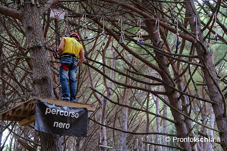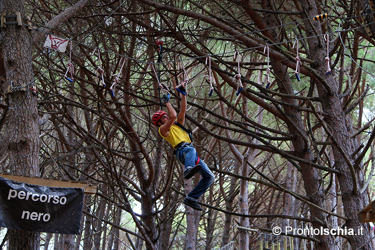 6) il percorso Nero, solo per quelli che hanno già un’esperienza collaudata in tema di arrampicate e tree climbing. Richiede forza, coraggio e tecnica. Per ragazzi e adulti a partire da 150 cm. di altezza;