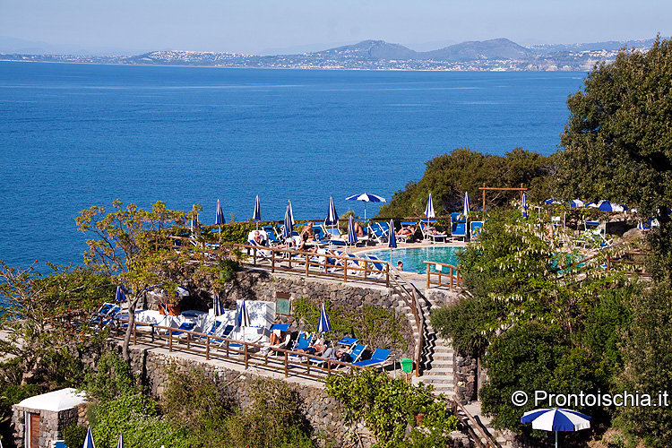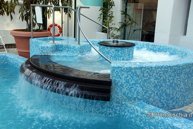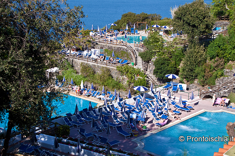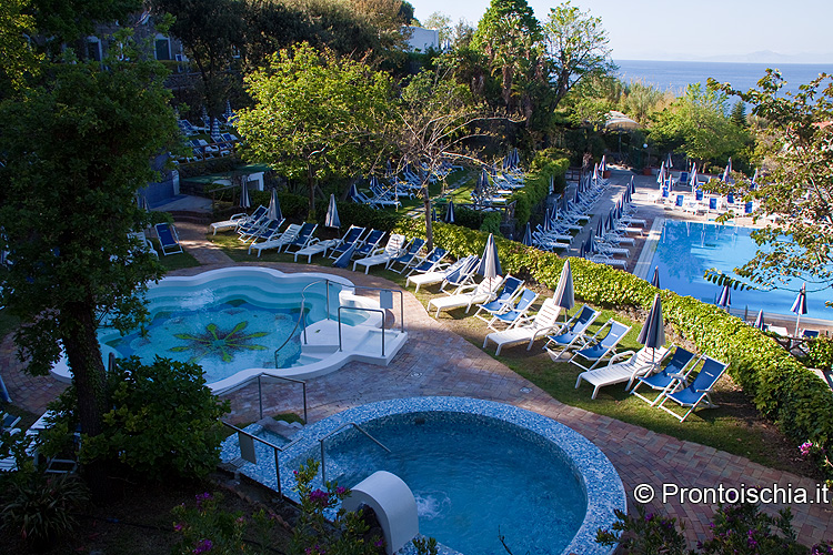 L’intera struttura (interno/esterno) dispone di 10 piscine continuamente rigenerate, di cui otto termali, con una temperatura che va dai 30° ai 40°C, una olimpionica, alimentata con acqua di mare e una per i bambini, con una temperatura di 18°C. C’è anche una piattaforma, con discesa a mare, dotata di sedie, lettini e ombrelloni così da poter alternare in qualsiasi momento le cure termali con un tuffo rigenerante in acqua.