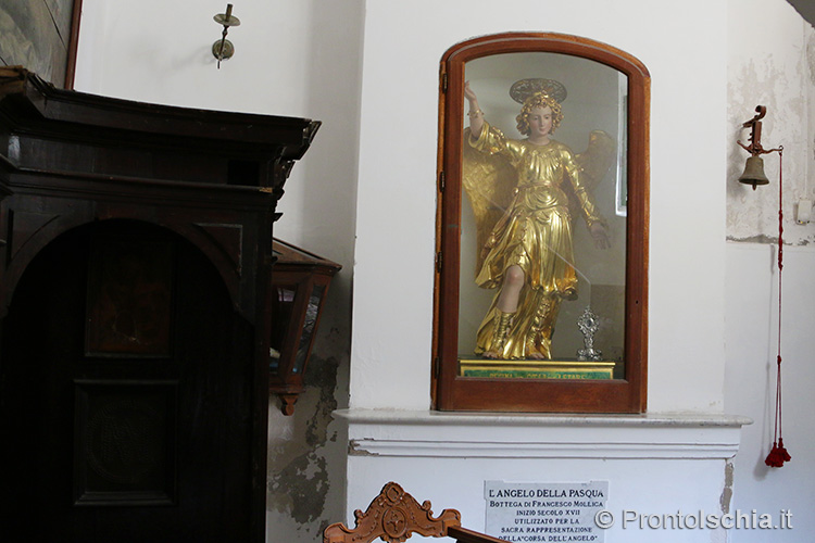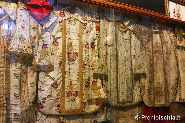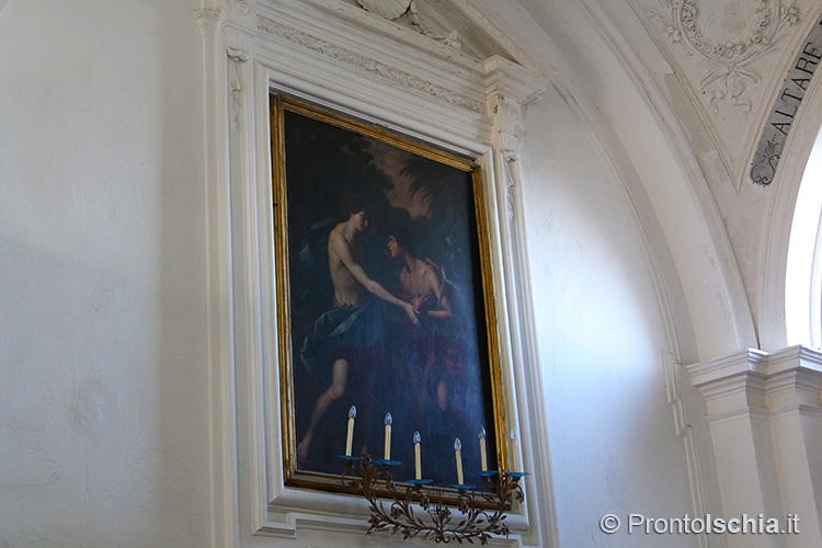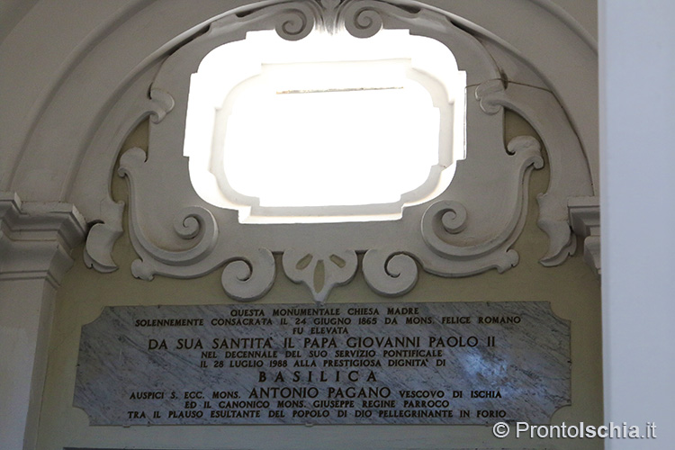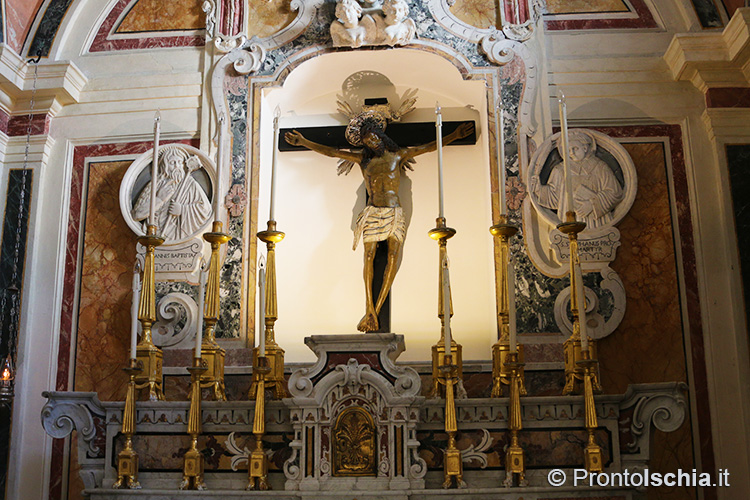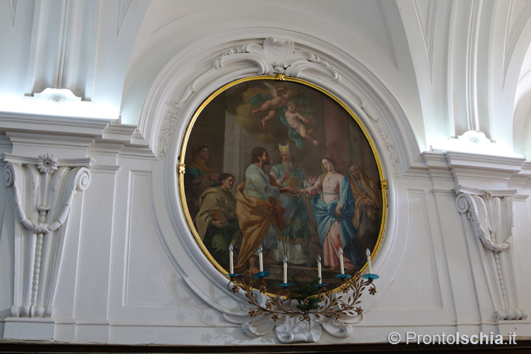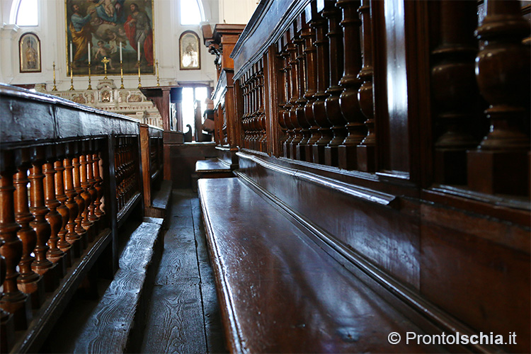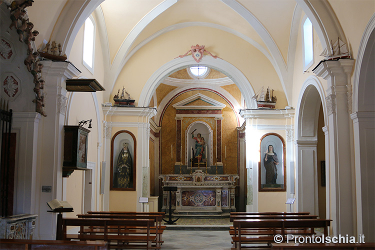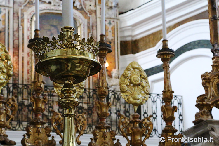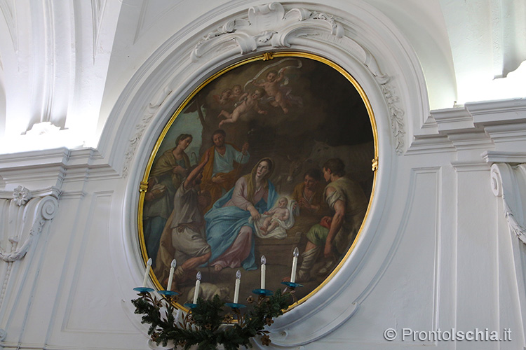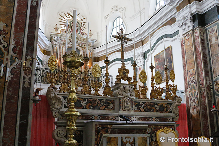 , testimonianza della ricettività con cui Forio, ma l’isola d’Ischia in generale, seppero reinterpretare le tendenze artistiche provenienti dalla terraferma. Ci si soffermi, tra le altre cose, sul soffitto cassettonato e sul mosaico di marmi su fondo nero dell’abside maggiore: entrambi, richiami evidenti all’architettura barocca del XVII secolo.