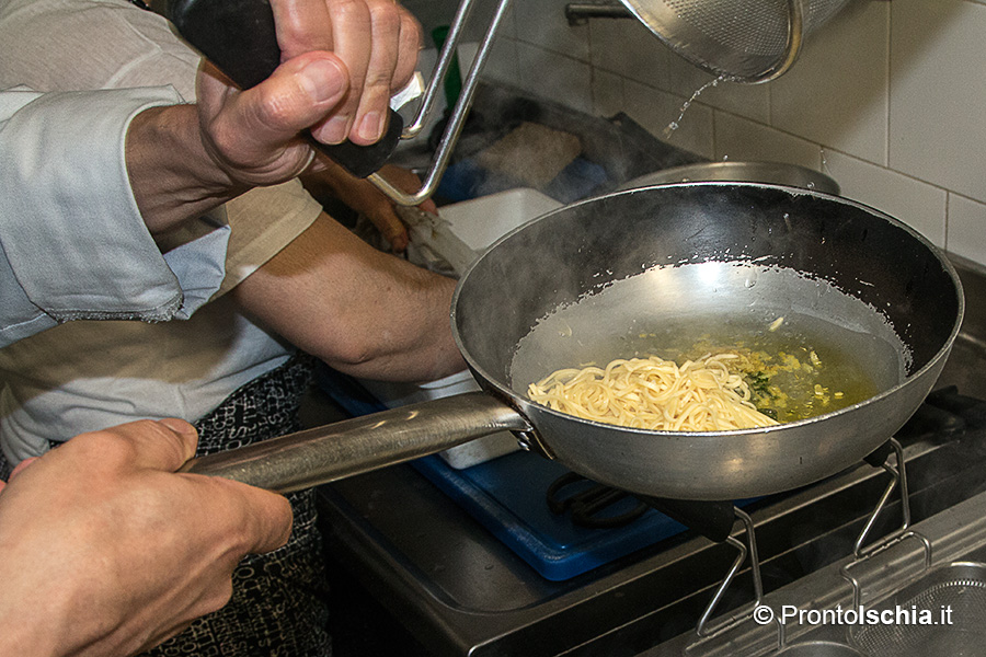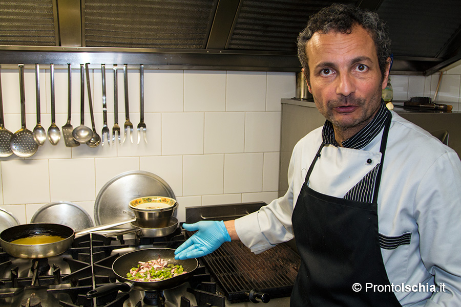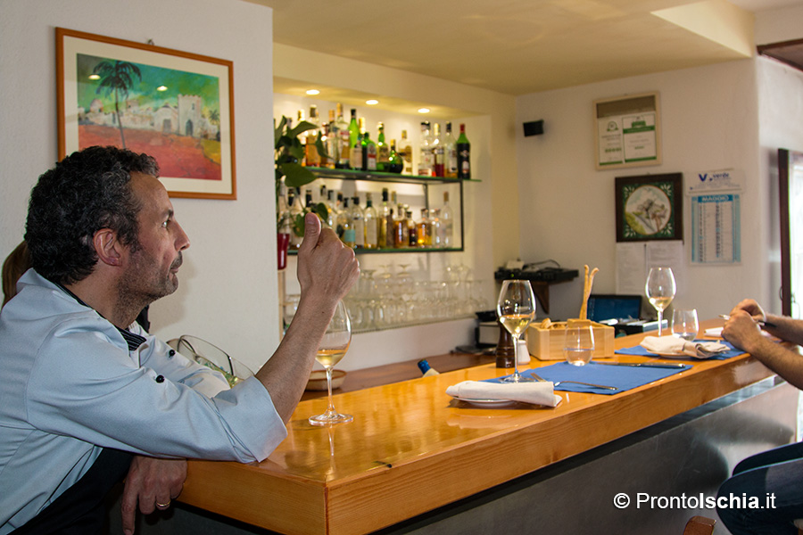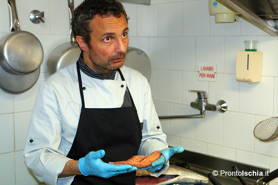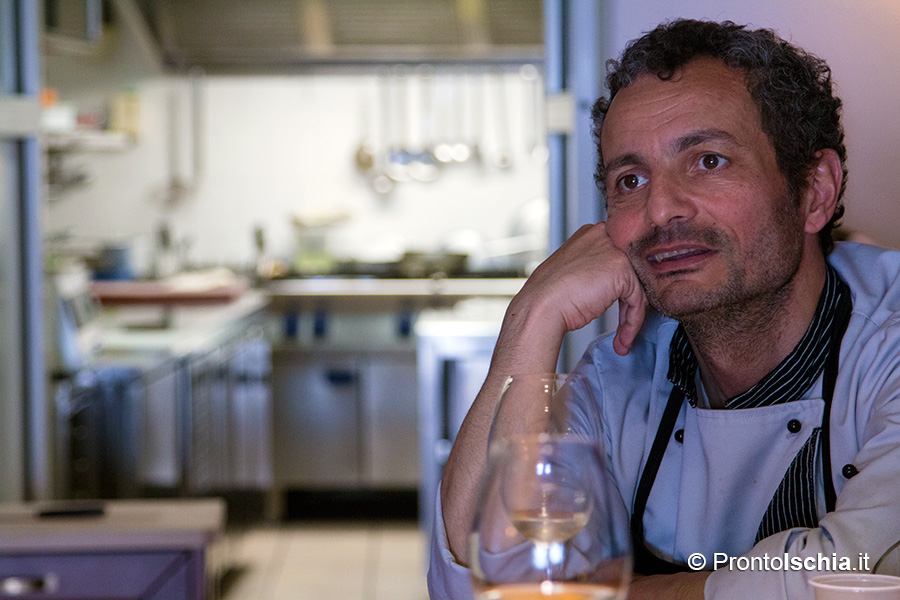 Che significa? Significa, per esempio, fare completamente a meno del pesce d'allevamento, a costo di scontentare gli avventori e rinunciare a più facili guadagni. Significa, inoltre, scegliere solo il meglio, senza derogare mai alla qualità e alla freschezza del prodotto (il top è la pescheria "Da Silvio", via delle Ginestre, Ischia Porto). Ancora, significa scegliere solo ortaggi e spezie provenienti dall'orto di famiglia che l'amata madre ha provveduto fino all'ultimo a portare di persona al figlio, anche due volte al giorno.