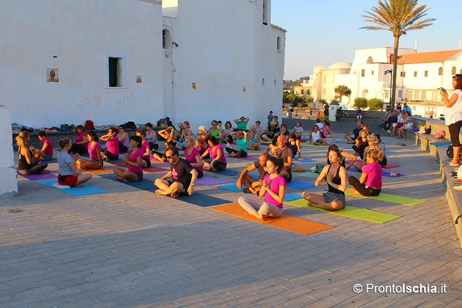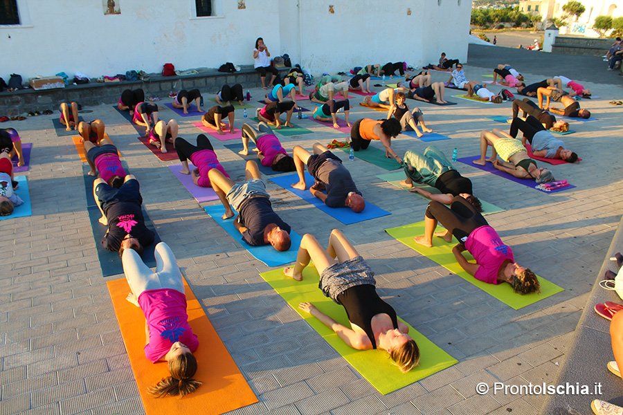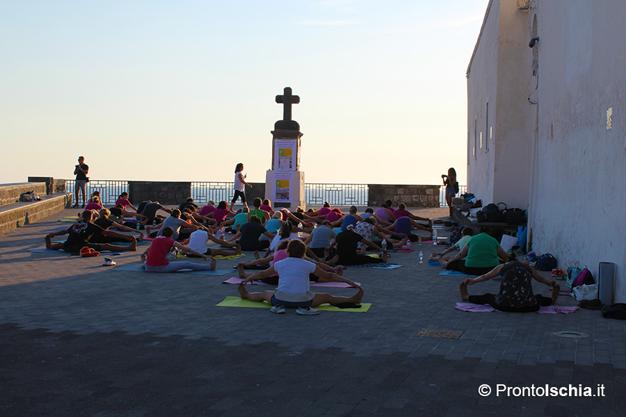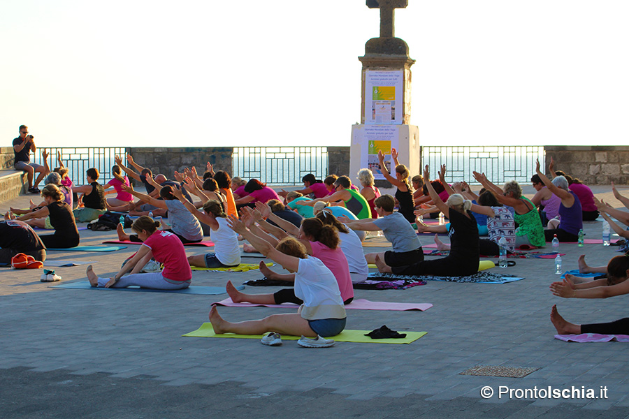 Il raduno ischitano si svolge nella meravigliosa cornice del sagrato della chiesa del Soccorso, a Forio. A organizzare l'evento l’associazione “Yoga Ischia” di Donatella Fardella. Va detto, ed è un aspetto molto importante, che l'appuntamento è aperto a tutti: sia a chi pratica yoga già da tempo che a quanti, invece, desiderano semplicemente saperne qualcosa in più.