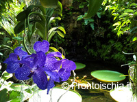 coperto di rampicanti e gelsomini. I due lati della pergola sono ornati da ciottoli di vetro blu, ideati da Andy Cao, che donano una nota di colore intensa, in contrasto con le zone riparate dal vento. Alle spalle della cascata del Coccodrillo, così chiamata per la statua in bronzo che la domina, si ammira la Nymphaea caerulea, detta anche Loto Blu. Questa pianta, originaria del Delta del Nilo, veniva usata dagli antichi egizi come erba medicinale per l’effetto sedativo dei suoi fiori. Oggi il Loto Blu è a rischio estinzione e la sua presenza nel giardino ne accresce il valore testimoniale.