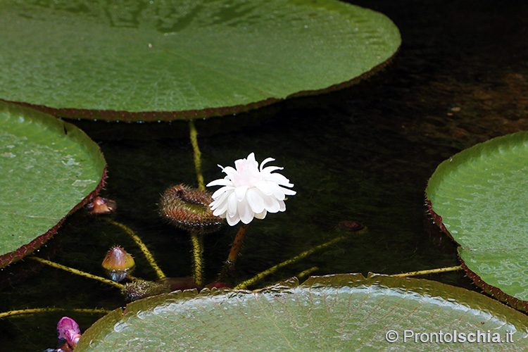 Pianta acquatica tropicale che abbiamo avuto il privilegio di vedere in fiore. O meglio, nella particolare fase della fioritura in cui la pianta è femmina e il fiore bianco. Successivamente - il giorno dopo - la Victoria Amazonica cambia sesso e colore (il fiore diventa rosso).