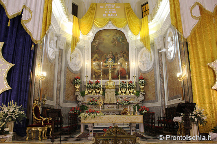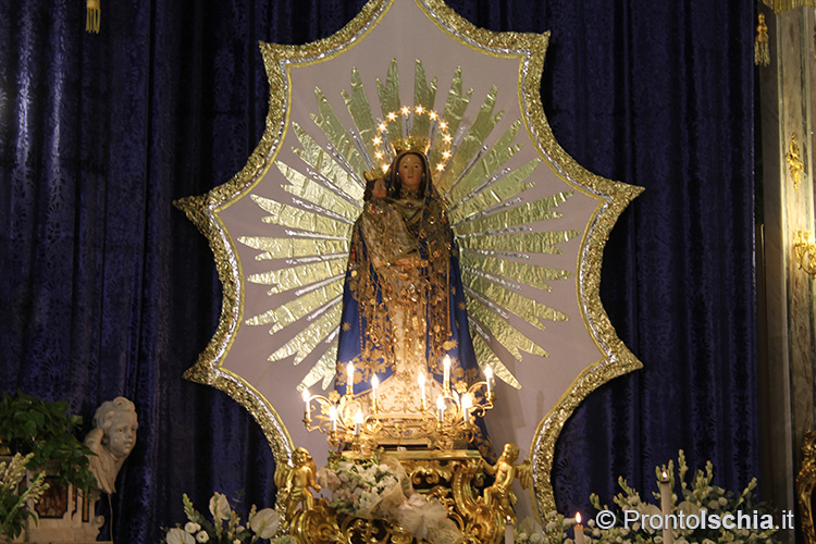 Per la statua del santo bisogna andare, invece, nella chiesa Collegiata dello Spirito Santo dove, nei giorni della festa, viene intronizzata anche la statua di Santa Maria di Costantinopoli, la cui venerazione, peraltro, non è circoscritta alla sola Ischia Ponte. Anche al Testaccio, all'inizio della bella via Giorgio Corafà, c'è una piccola chiesa dedicata a questa Madonna e un altro altare, ora scomparso, era presente a Monterone, popoloso quartiere di Forio.