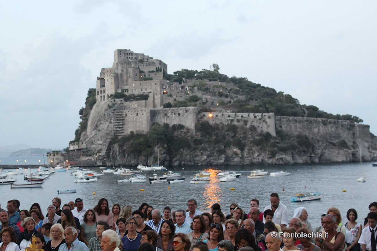 Ed è proprio lo scenario d'incanto che offre la chiesina di Sant'Anna il motivo che ci ha spinto ad assistere alla funzione religiosa. Si tratta di attimi, momenti, semplici frame per dirla all'inglese, che però hanno il potere di restituire un'immagine più intima dell'isola d'Ischia, lontana dalle luci, i rumori e la calca tipiche dell'alta stagione. Compresa la folla che si assiepa sugli scogli del pontile aragonese per assistere alla sfilata delle barche.