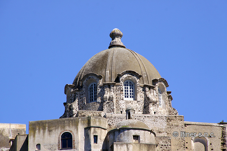 La cattedrale teatro del matrimonio dei due nobili non c’è più perchè bombardata dagli Inglesi (1809) nell’ambito delle guerre napoleoniche. Al tempo infatti il Castello era sotto il dominio del primo impero francese. Sotto di essa c’è però una cripta composta da sette piccole cappelle, riconducibili ad altrettante famiglie gentilizie del luogo. Sulle pareti di ciascuna cappella sono tuttora visibili affreschi e stucchi di pregevole fattezza. Lo stesso per quel che resta delle pareti della Cattedrale che oggi è uno spazio semiaperto dedicato allo svolgimento di manifestazioni culturali e musicali.
