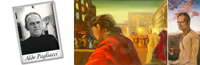 Aldo Pagliacci (1913 - 1990). Nato a San Benedetto del Tronto, ben presto si trasferisce con la famiglia a Pesaro dove compie i suoi studi artistici e, dove, sin da giovanissimo, mostra doti non comuni nella difficile arte della pittura. A soli 20 anni decide di trasferirsi in Africa, dove partecipa alla