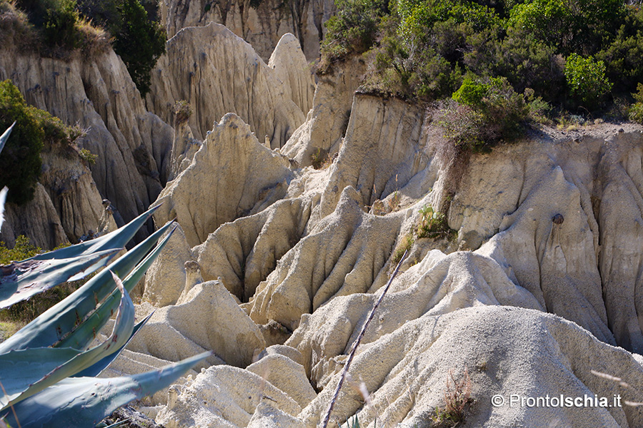 Camminare a Ischia nella natura 11Delle tre, è di sicuro l'escursione più difficile. Adatta a escursionisti esperti e comunque mai da soli. Tanto più se si decide di proseguire oltre le stupende piramidi di terra dei Pizzi Bianchi. Il sentiero, che termina sulla spiaggia dei Maronti, in diversi punti è abbastanza scosceso. Addirittura, nell'ultimo tratto che porta al bacino idro-termale di Cavascura  - e da lì sulla spiaggia - si procede solo con l'ausilio di corde. Le difficoltà, per altro verso, testimoniano la bellezza della costa meridionale dell'isola, assai più frastagliata del versante settentrionale.