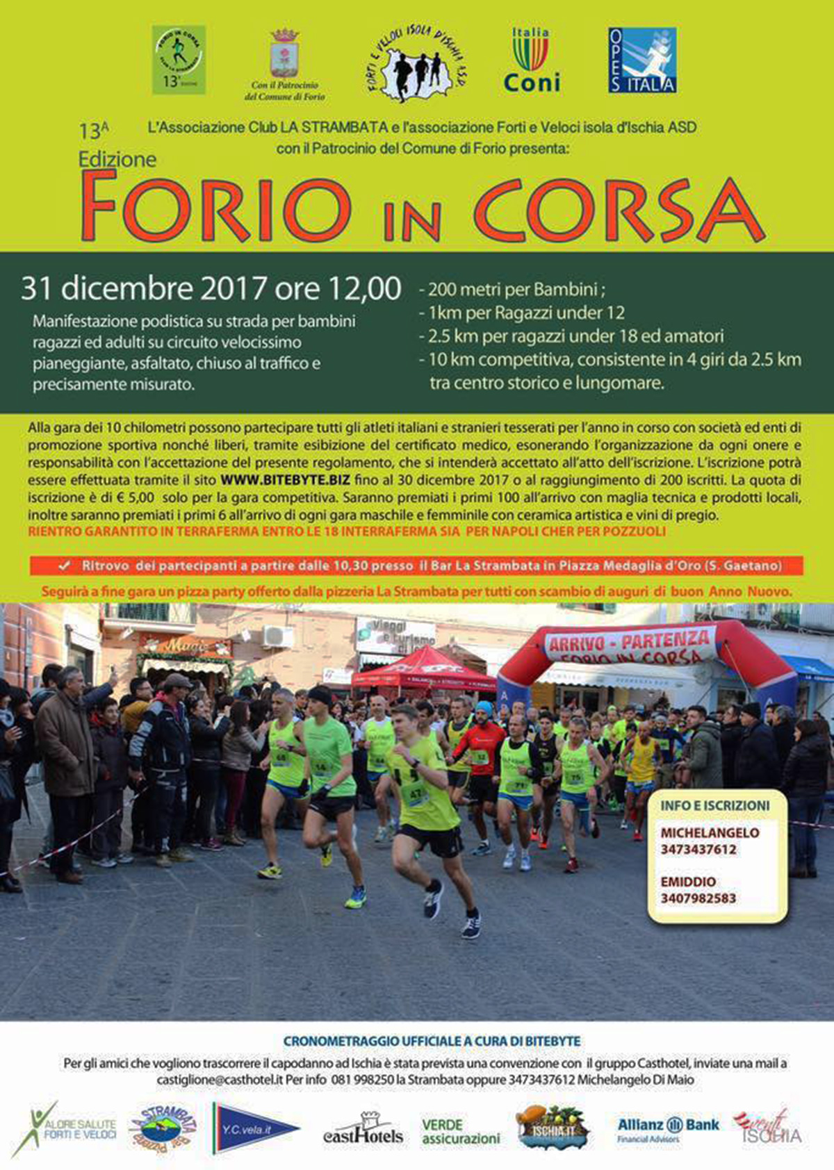 Che poi degli eventi citati l'ultimo è anche il più vecchio, con più di 10 edizioni all'attivo. "Forio in corsa", infatti, nasce per gioco, su iniziativa di pochi amici amanti del running in cerca di un modo divertente di trascorrere la giornata del 31 dicembre prima del tradizionale cenone di San Silvestro.