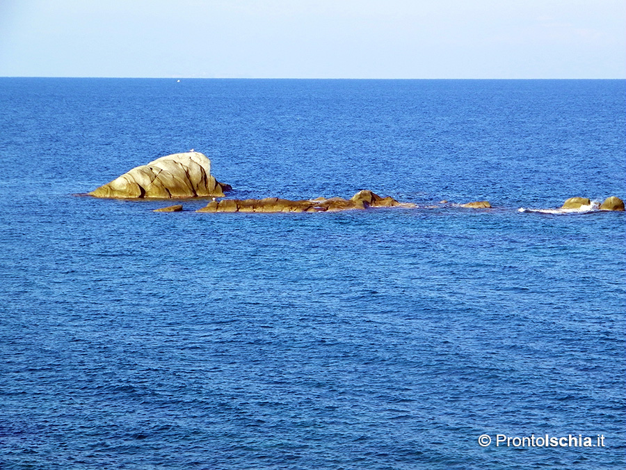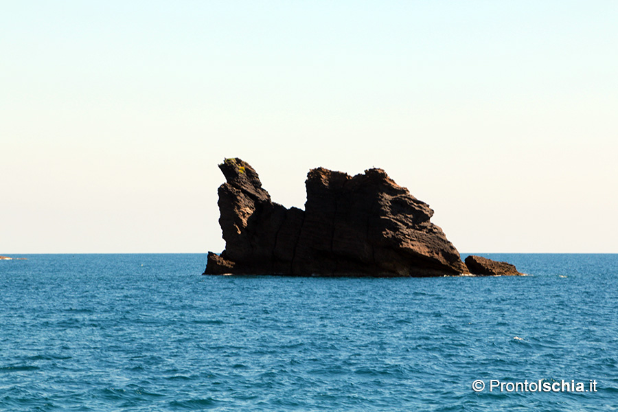 Le pietre dell'isola d'Ischia 12La pietra della Nave è un imponente scoglio a 80 metri dalla costa a strapiombo di Punta Imperatore, la collina che cinge la baia di Citara. Leggenda vuole si tratti della galea che Alcinoo, re dei Feaci, mise a disposizione di Ulisse per il suo ritorno a Itaca. Poseidone, furente per non essere riuscito a fermare l'assassino di suo figlio Polifemo, si vendicò allora pietrificando l'imbarcazione sulla via del ritorno. La Nave è un altro dei punti di immersione preferiti dai subacquei ricreativi che frequentano il mare e le coste dell'isola d'Ischia.