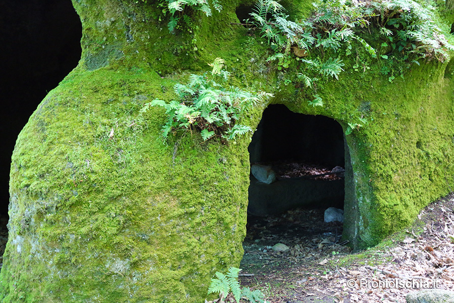 Le pietre dell'isola d'Ischia 8"Enormi blocchi di tufo pallido che hanno stranissime forme e fanno pensare a una necropoli di giganti". Così lo scrittore ravennate Giuseppe Orioli descriveva nel 1937 le case di pietra della Falanga, a ulteriore conferma della valenza magico-simbolica della pietra nella cultura contadina. Suggestione da cui non era immune la civiltà rurale dell'isola d'Ischia, come dimostrano le due chiese rupestri di San Nicola e Santa Maria al Monte, rispettivamente in cima e ai piedi di questo bosco di castagni a oltre 500 metri sul livello del mare, nel comune di Forio.