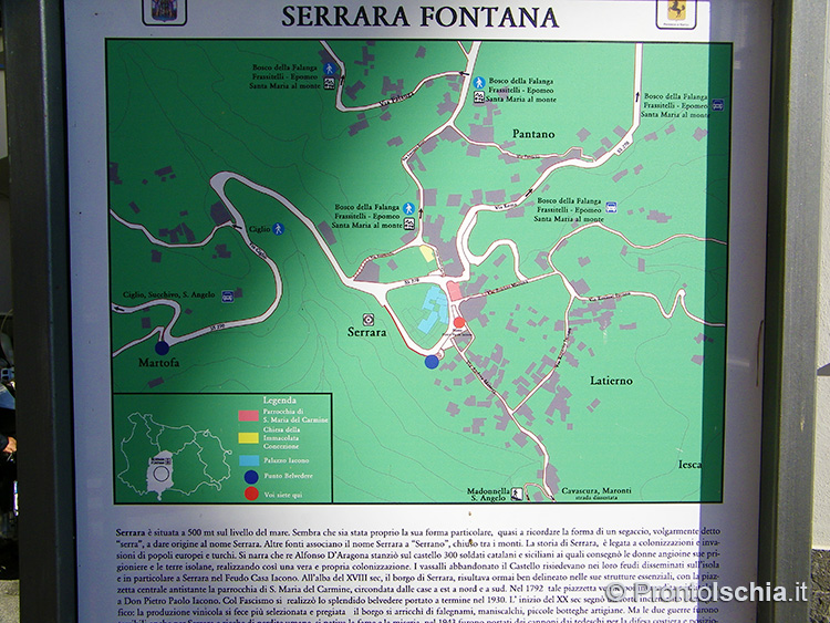 Anche oggi che non ci sono più le botteghe artigiane, i falegnami e i maniscalchi, Serrara Fontana conserva intatte le caratteristiche di antico e fascinoso borgo rurale. Sul cartellone al centro della piazzetta di Serrara, intitolata nel 1792 al "Don" locale Pietro Paolo Iacono, c’è scritto che il comune "ammalia quanti desiderino immergersi nella quiete e crogiolarsi nella natura" (Di Ruzza).