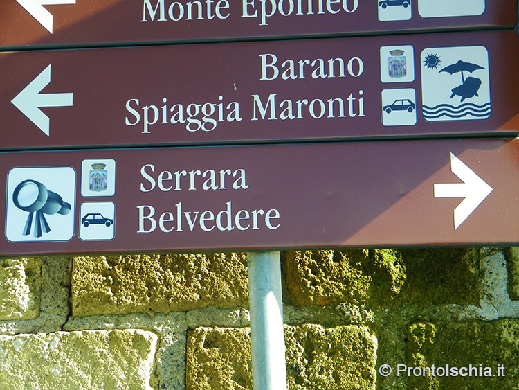 Se vale per l’intero territorio, vale a maggior ragione per il belvedere di Serrara. Realizzato nel 1930, questo slargo vanta una veduta magnifica dell’intero versante meridionale dell’isola d’Ischia: a est dei promontori di Costa Sparaina e Buttavento nel comune di Barano; a ovest del Monte di Panza e del promontorio di Punta Imperatore a Forio; di fronte della Torre di Sant’Angelo, geograficamente il punto più a sud dell’isola d’Ischia. Sullo sfondo Capri e la Penisola Sorrentina, così vicine che nelle giornate particolarmente terse sembra di poterle toccare.