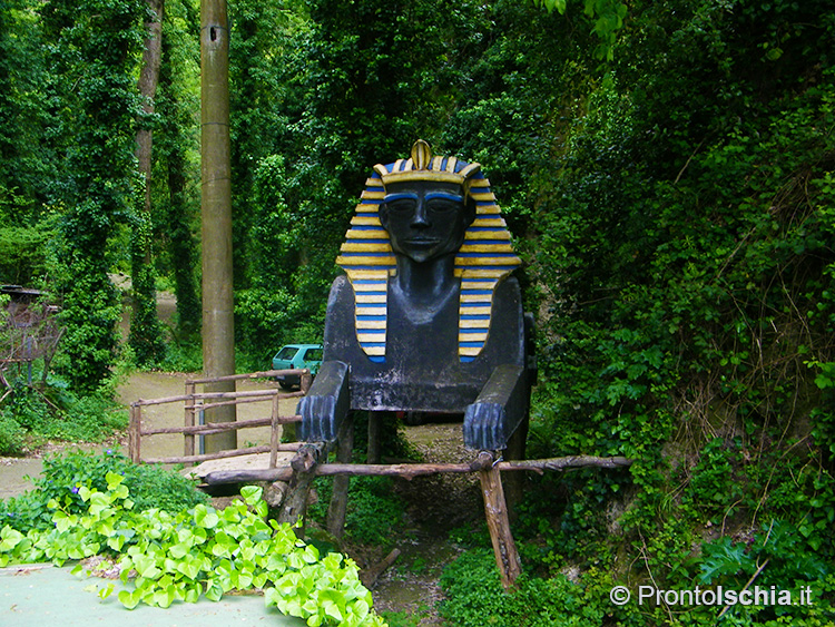 Sotto "scorre" l’ex Strada statale 270 che da questo lato dell’isola è tutta curve e tornanti, simili alle curve e i tornanti della costiera amalfitana. Una sfinge egiziana, ricordo della partecipazione del comune di Serrara Fontana a un’edizione della